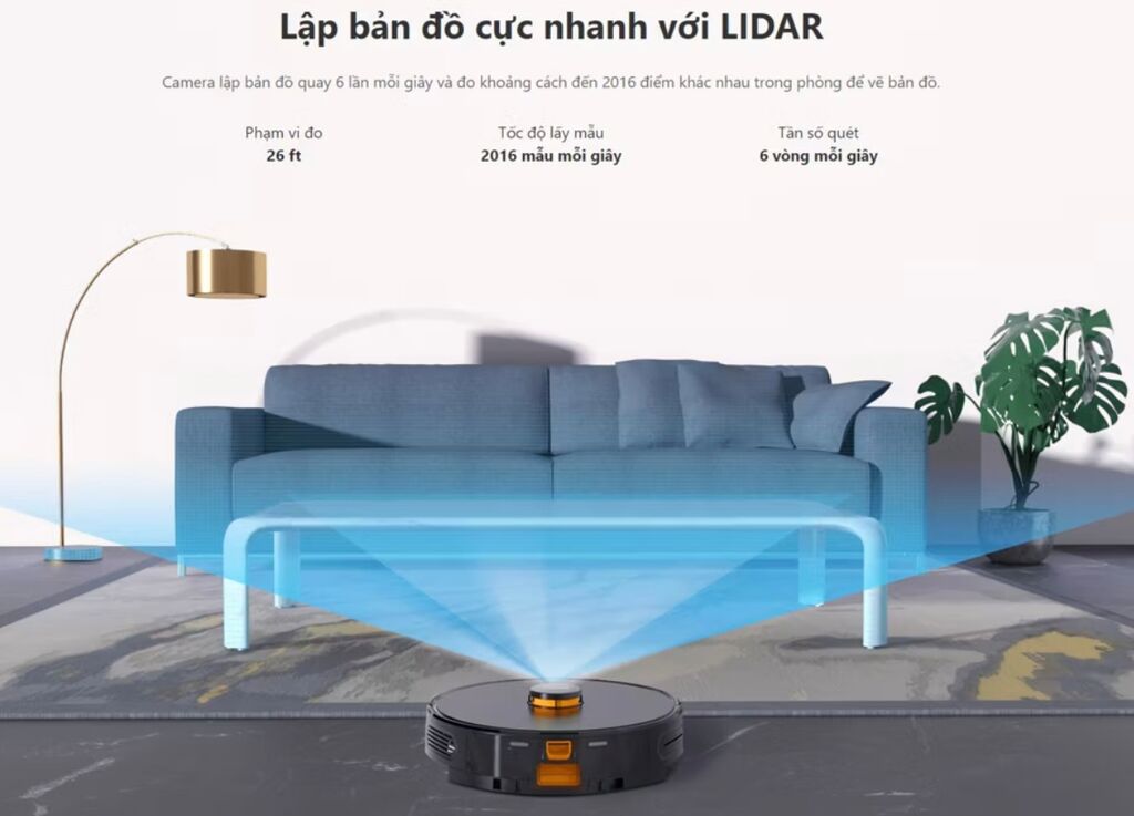 Quét & Vẽ lại bản đồ, từ đó giúp cho Robot định vị chính xác từng vị trí trong nhà, nên đường đi và kế hoạch dọn dẹp của Robot cũng “Thông Minh & Chính Xác” hơn.