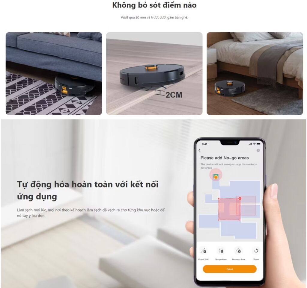 – Điều Khiển thông qua ứng dụng: Tùy Chỉnh, lên lịch trình và giám sát hoạt động dọn dẹp thông qua ứng dụng