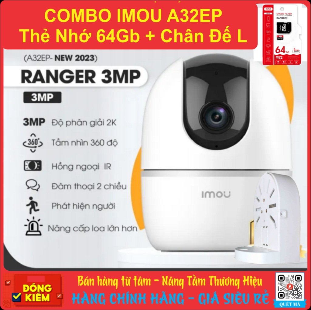 Combo Camera IMOU A32EP, A32 (3MP 2K) + Thẻ Nhớ 64 + Chân Đế L ( Bảo Hành 2 Năm)