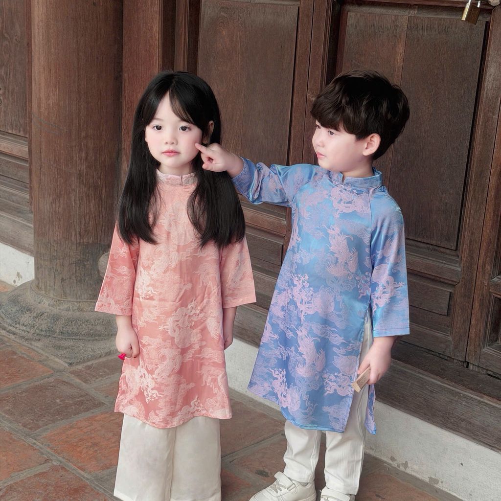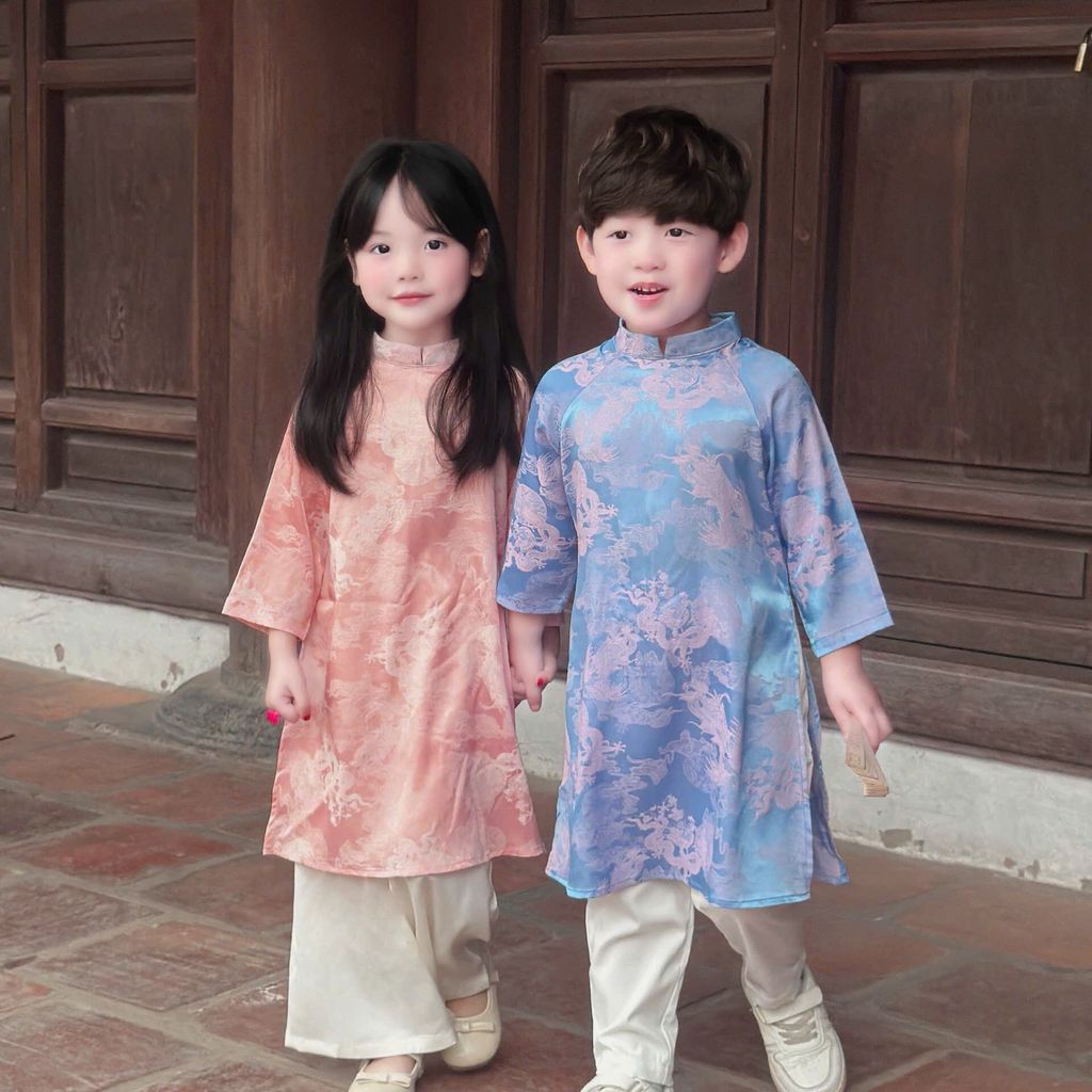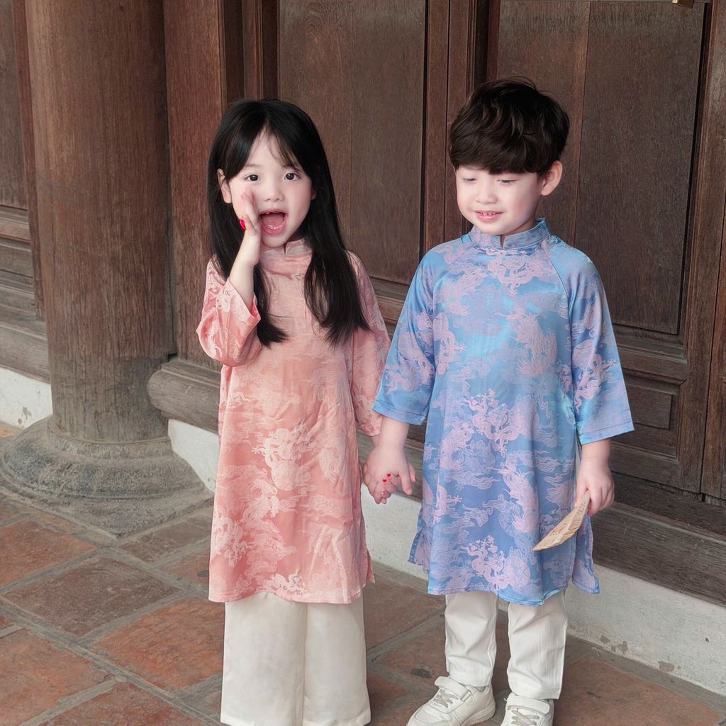 Mall[Kho Mỹ Đình] Size 80-140(9-29kg) LC26B002 Set áo dài bé trai, bé gái lụa mây ngọc bích