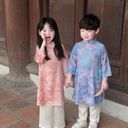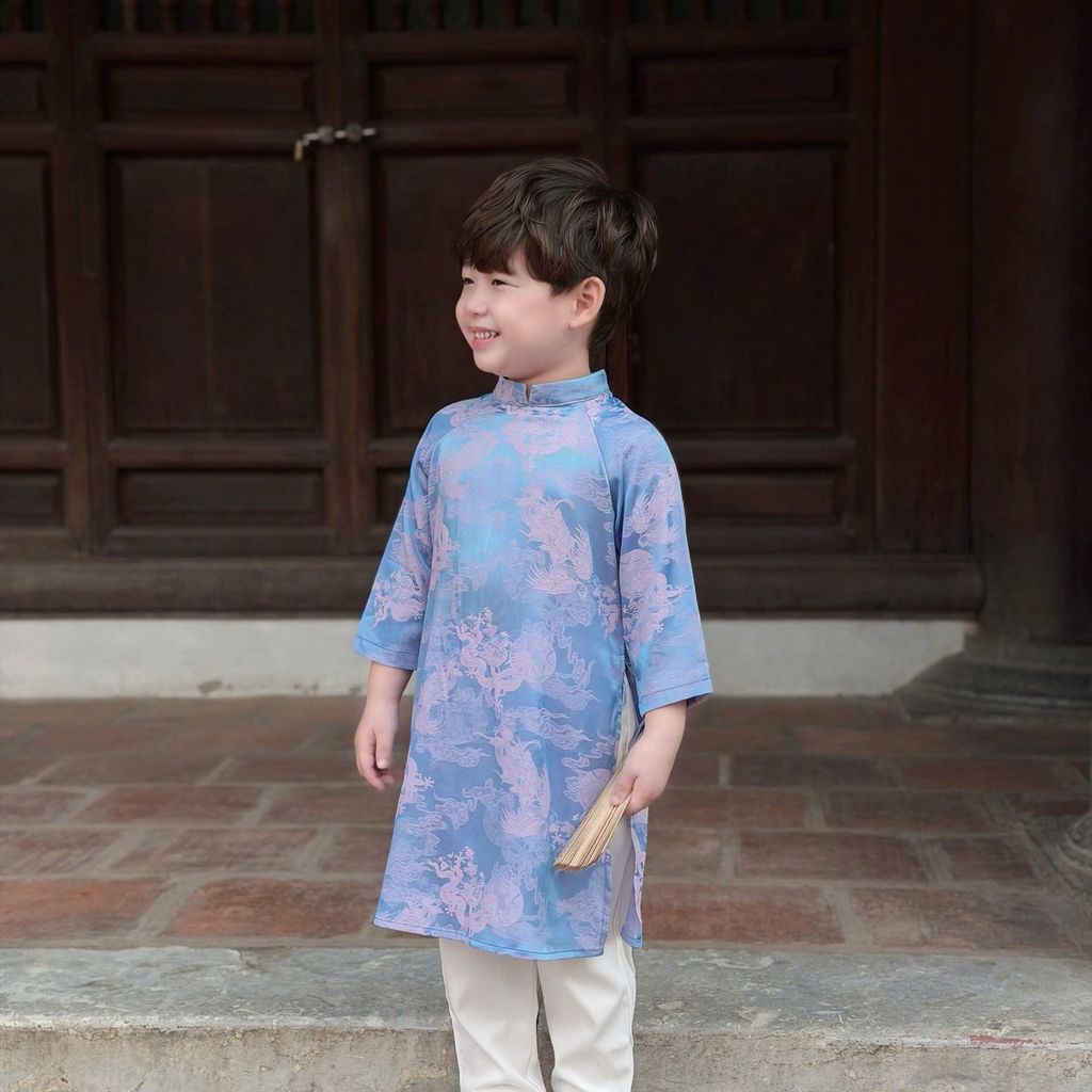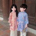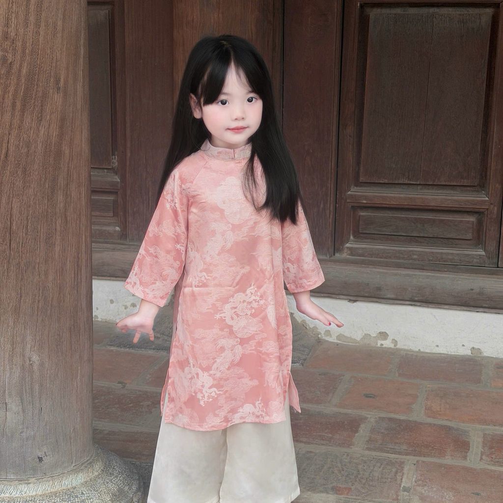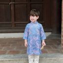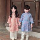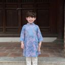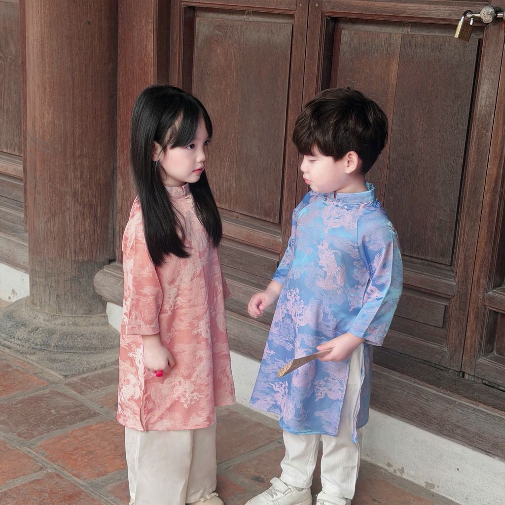 Mall[Kho Mỹ Đình] Size 80-140(9-29kg) LC26B002 Set áo dài bé trai, bé gái lụa mây ngọc bích