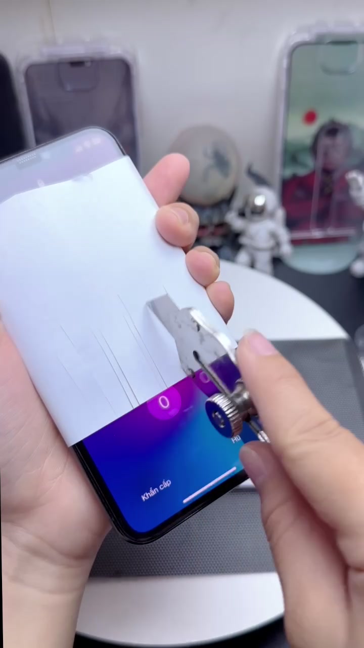 Lưu ý: Nếu xuất hiện bọt khí bạn nhẹ nhàng nhất nhẹ chỗ ấy lên nhất làm sao vừa tới bọt khí là được. Rồi bạn vuốt mạnh tay để khỏi có bọt khí. Nếu thấy còn bọt khí thì bạn cần phải dùng tay nhẹ nhàng nâng tấm cường lực lên và nhẹ nhàng làm lại các bước trên.
