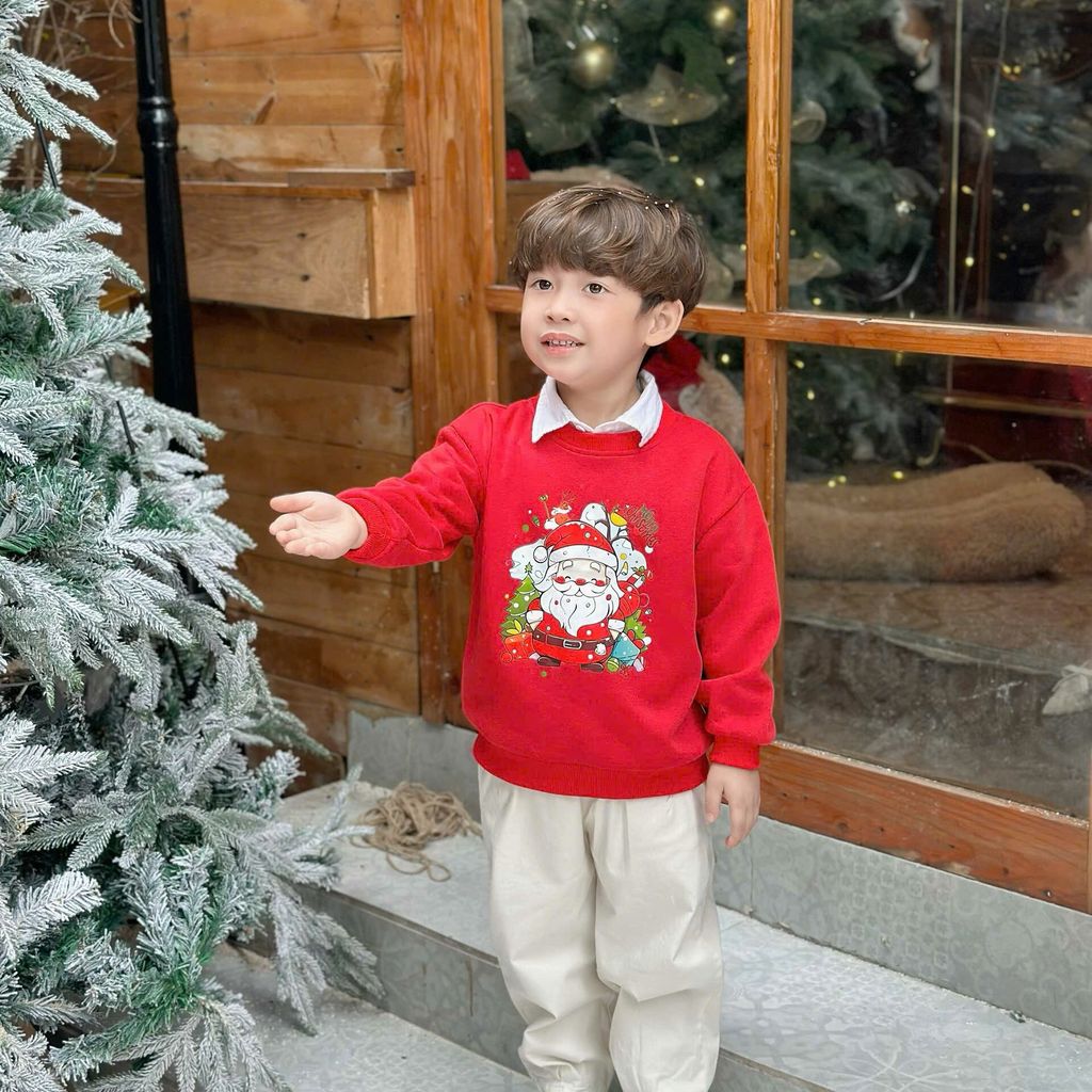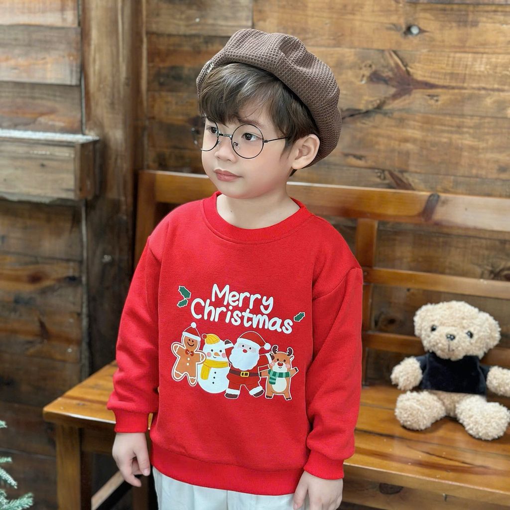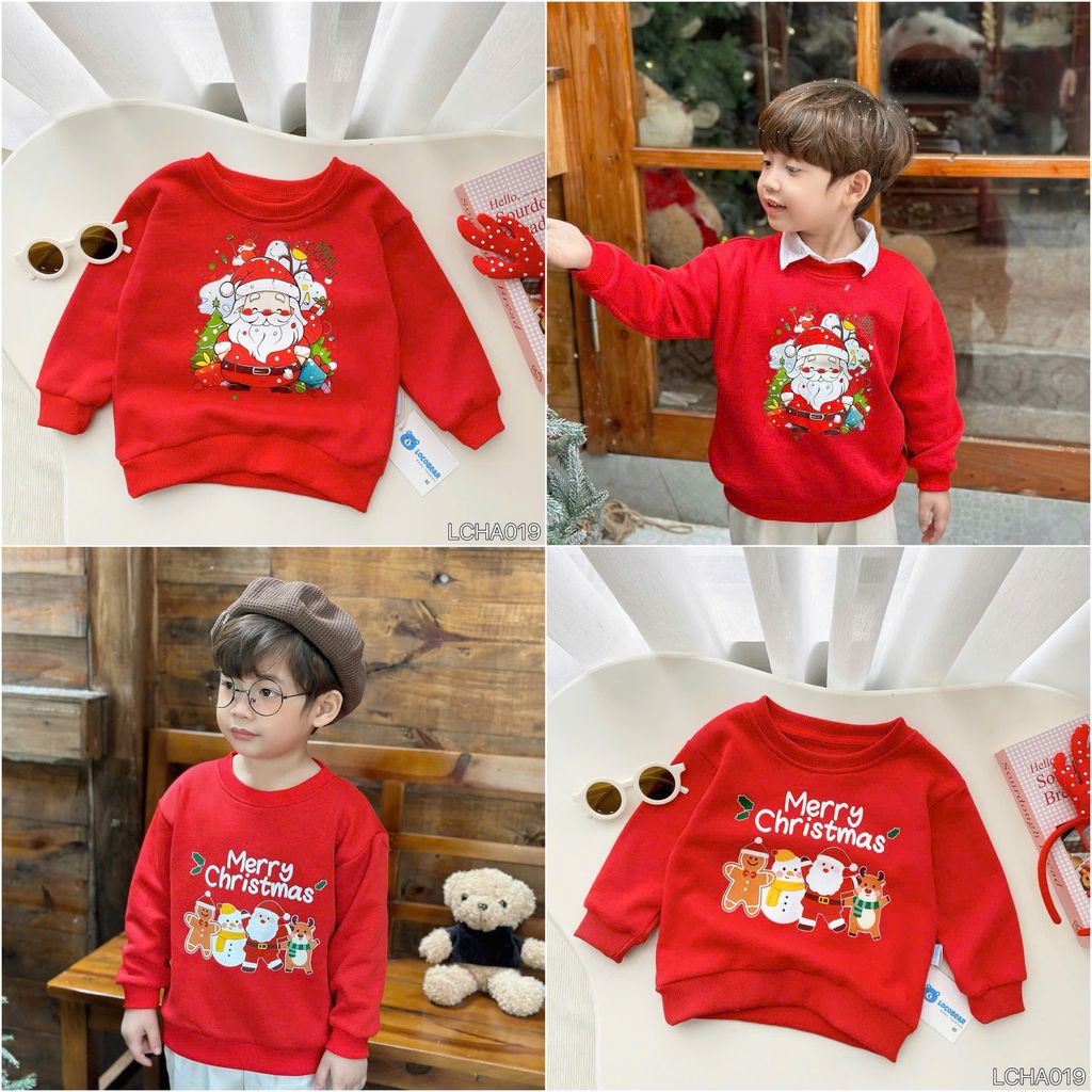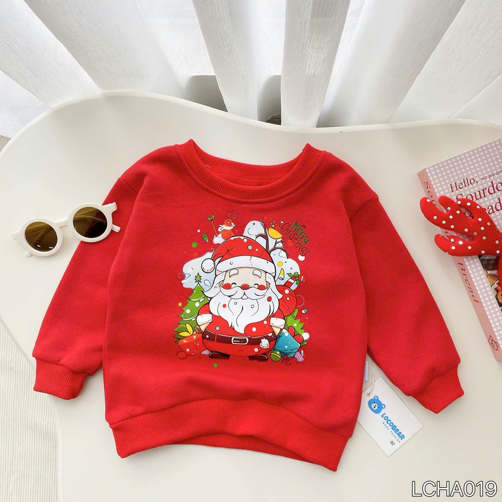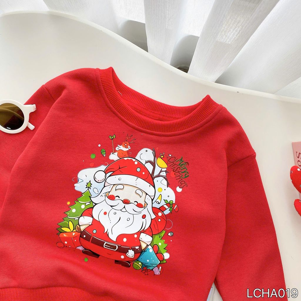Mall[Kho Mỹ Đình] (9-29kg) LCHA019 Áo nỉ bông dài tay hoạ tiết Noel màu đỏ cho bé size 80-140