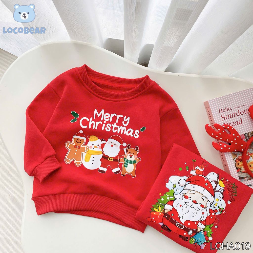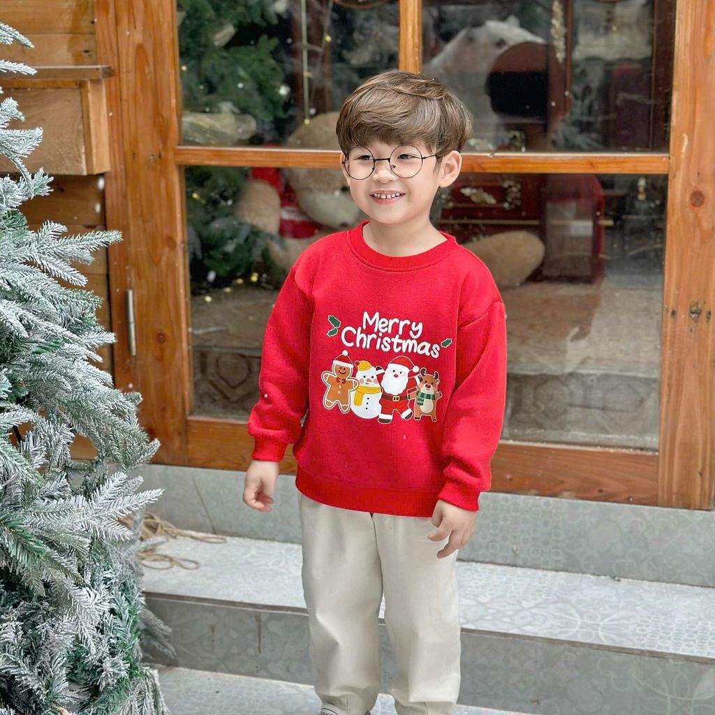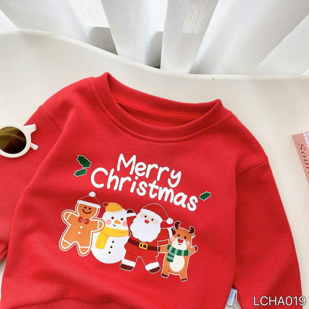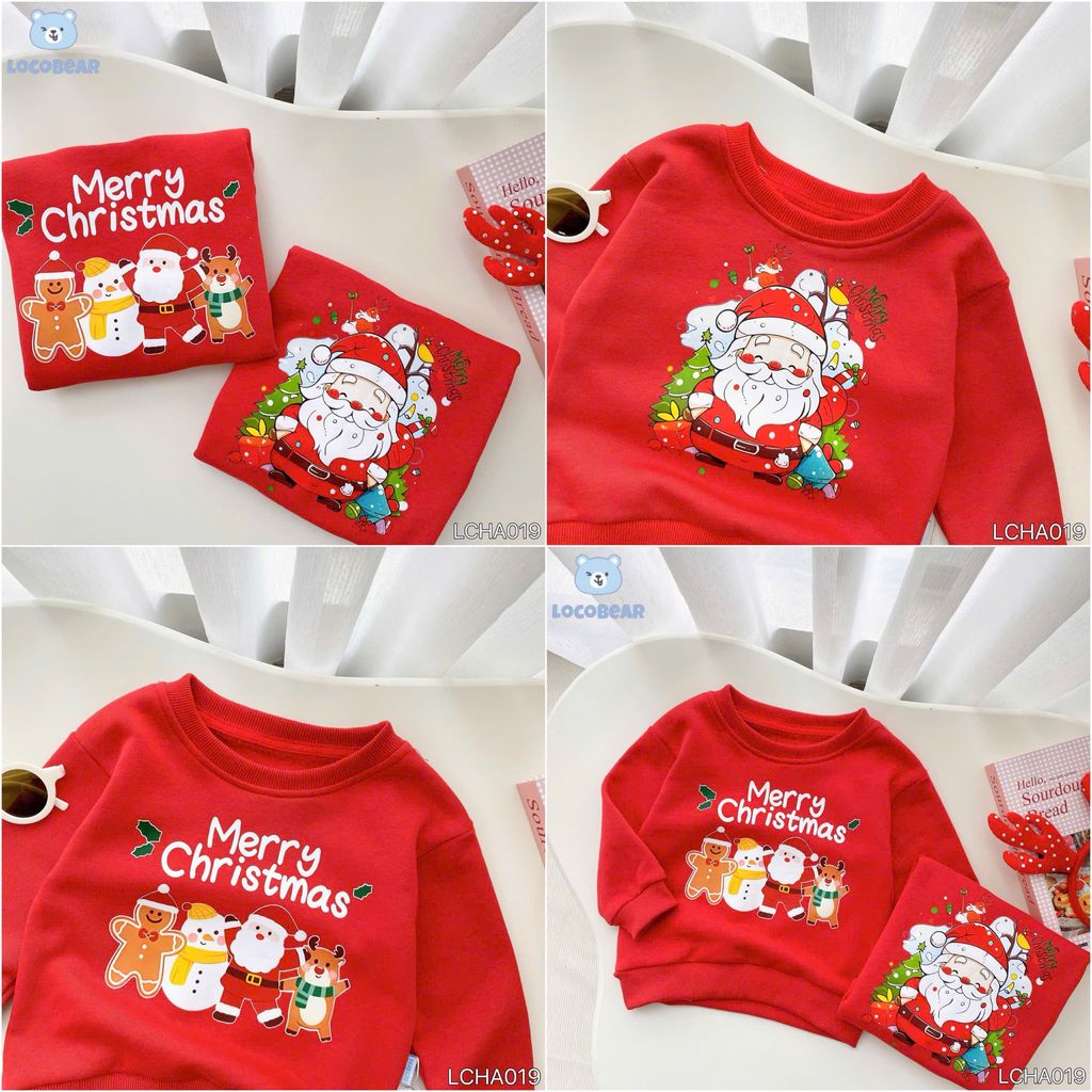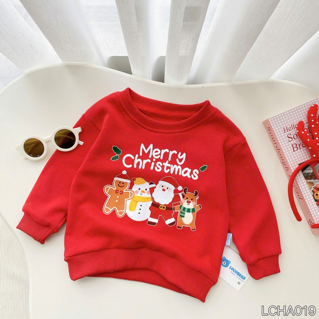 Mall[Kho Mỹ Đình] (9-29kg) LCHA019 Áo nỉ bông dài tay hoạ tiết Noel màu đỏ cho bé size 80-140