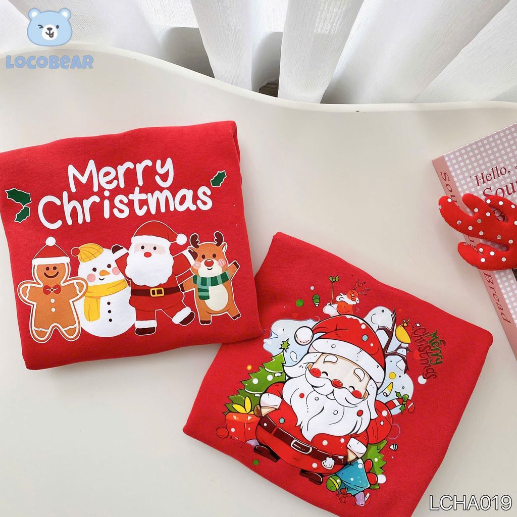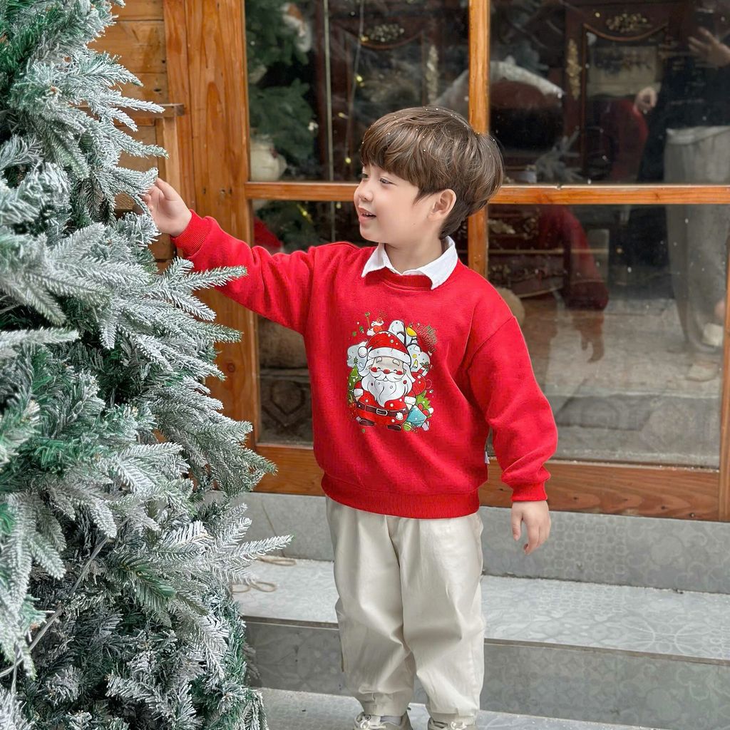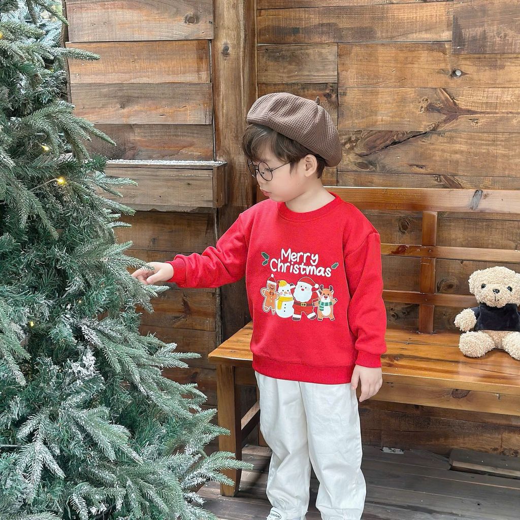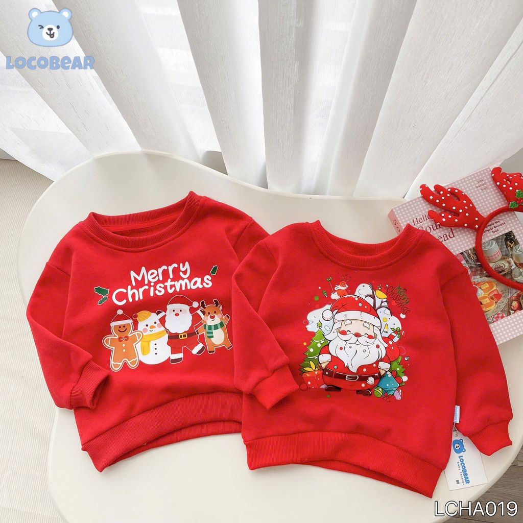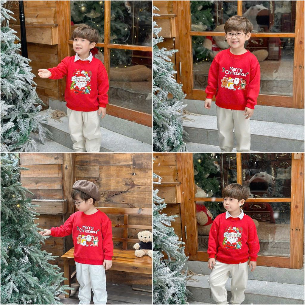 Mall[Kho Mỹ Đình] (9-29kg) LCHA019 Áo nỉ bông dài tay hoạ tiết Noel màu đỏ cho bé size 80-140