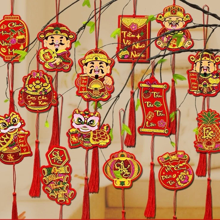 Set 5 Liễn treo đào, treo quất, treo mai ...trang trí tết 2026 - Full VAT ( 1 Túi 5 Cái )
